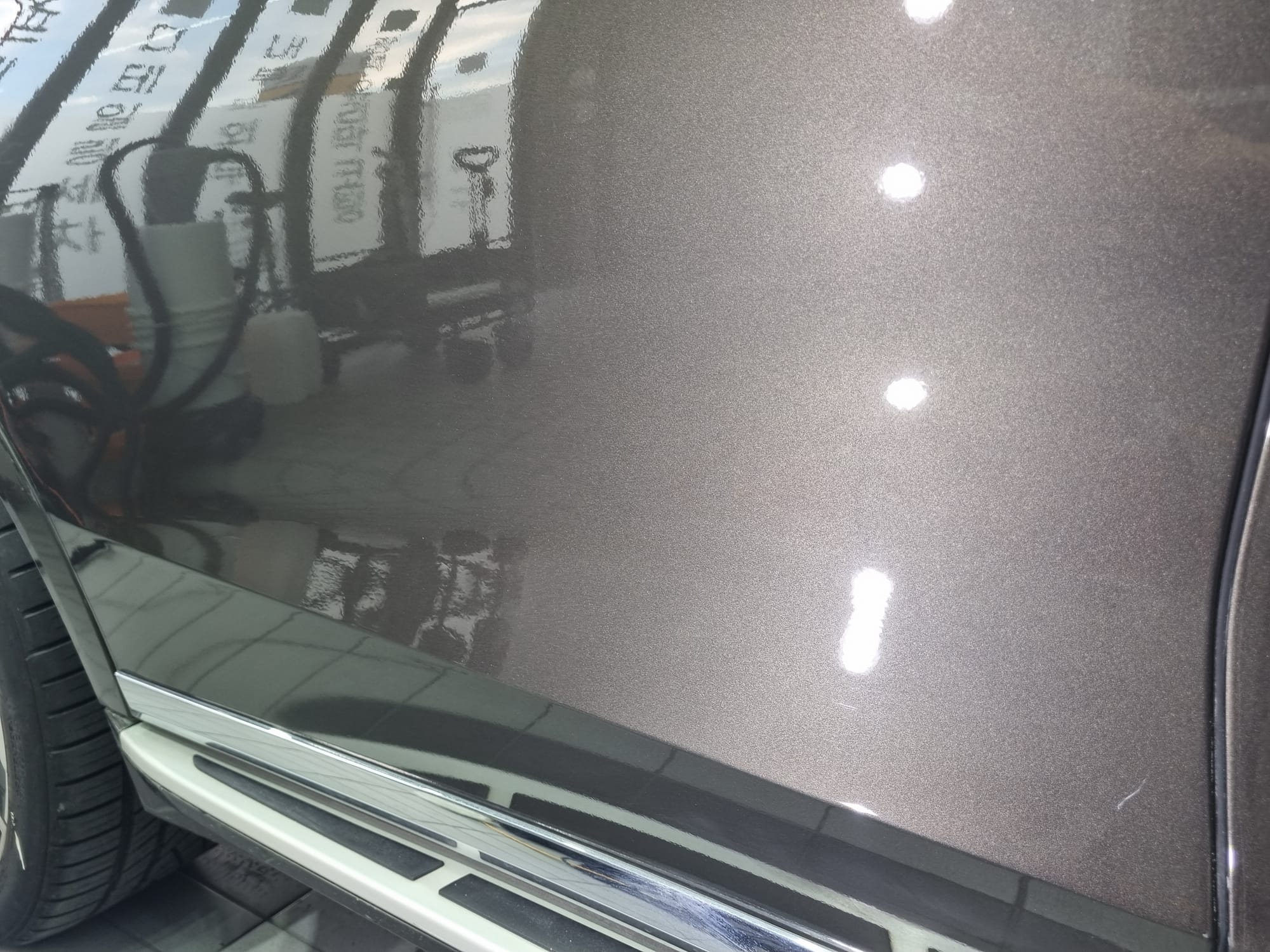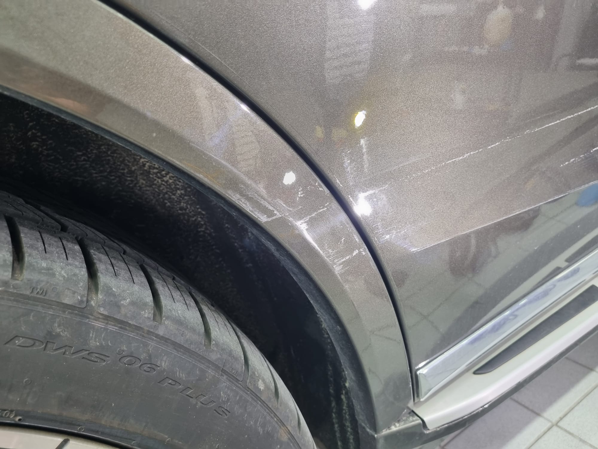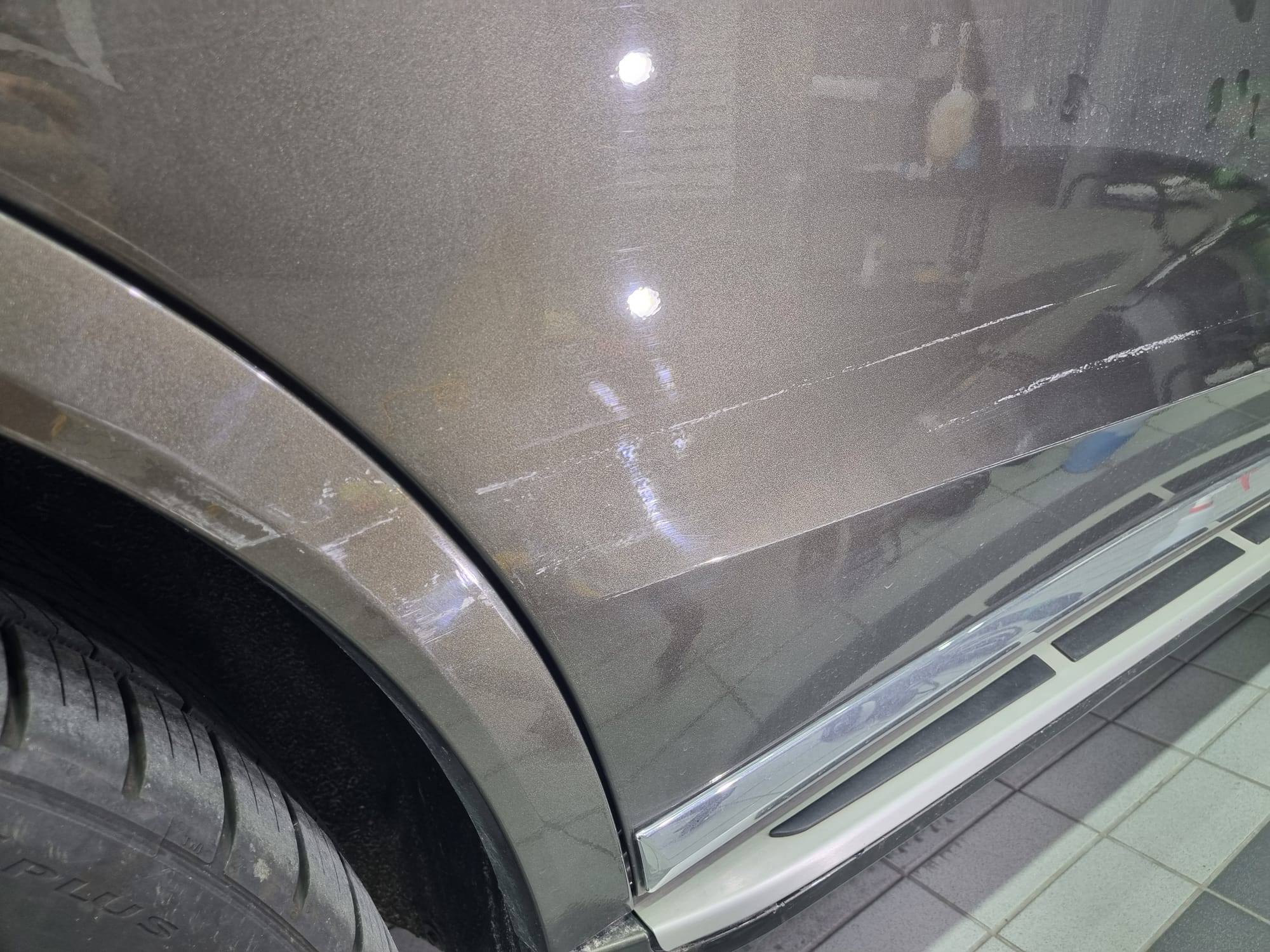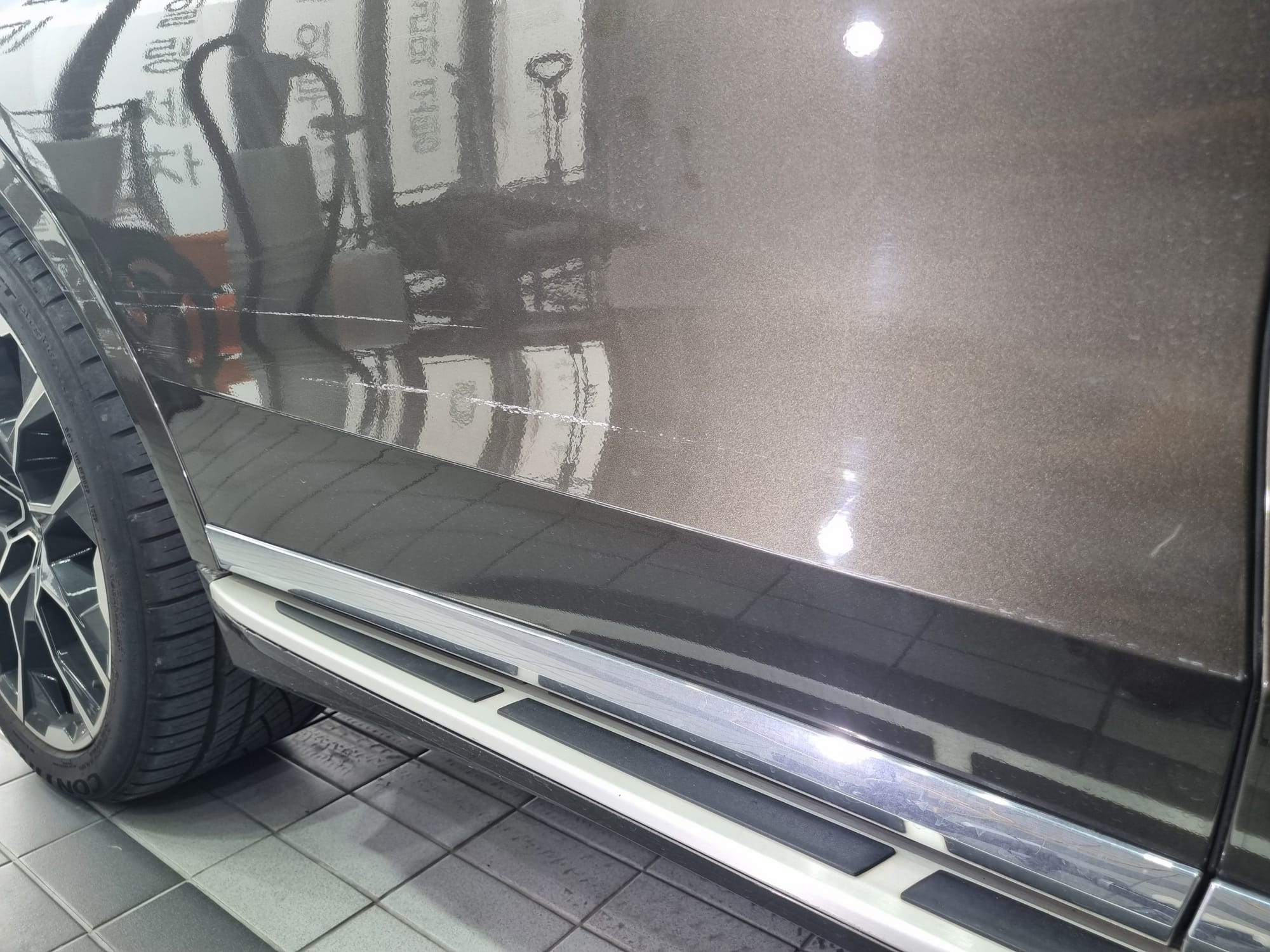 깊은 스크래치는 차체의 도장이 많이 사라진 상태로 광택으로는 복원이 불가하여 차주님께 설명을 드렸습니다.