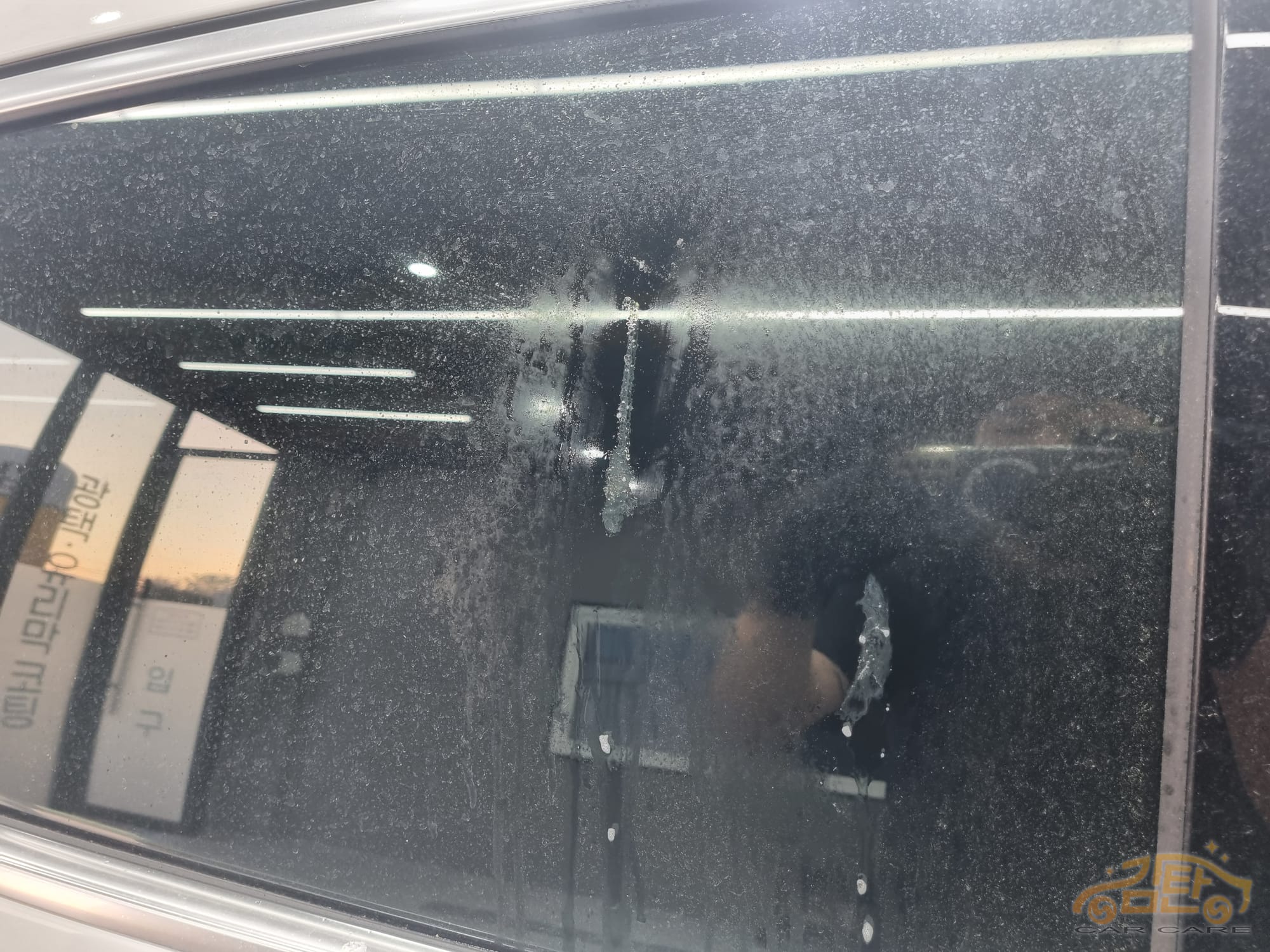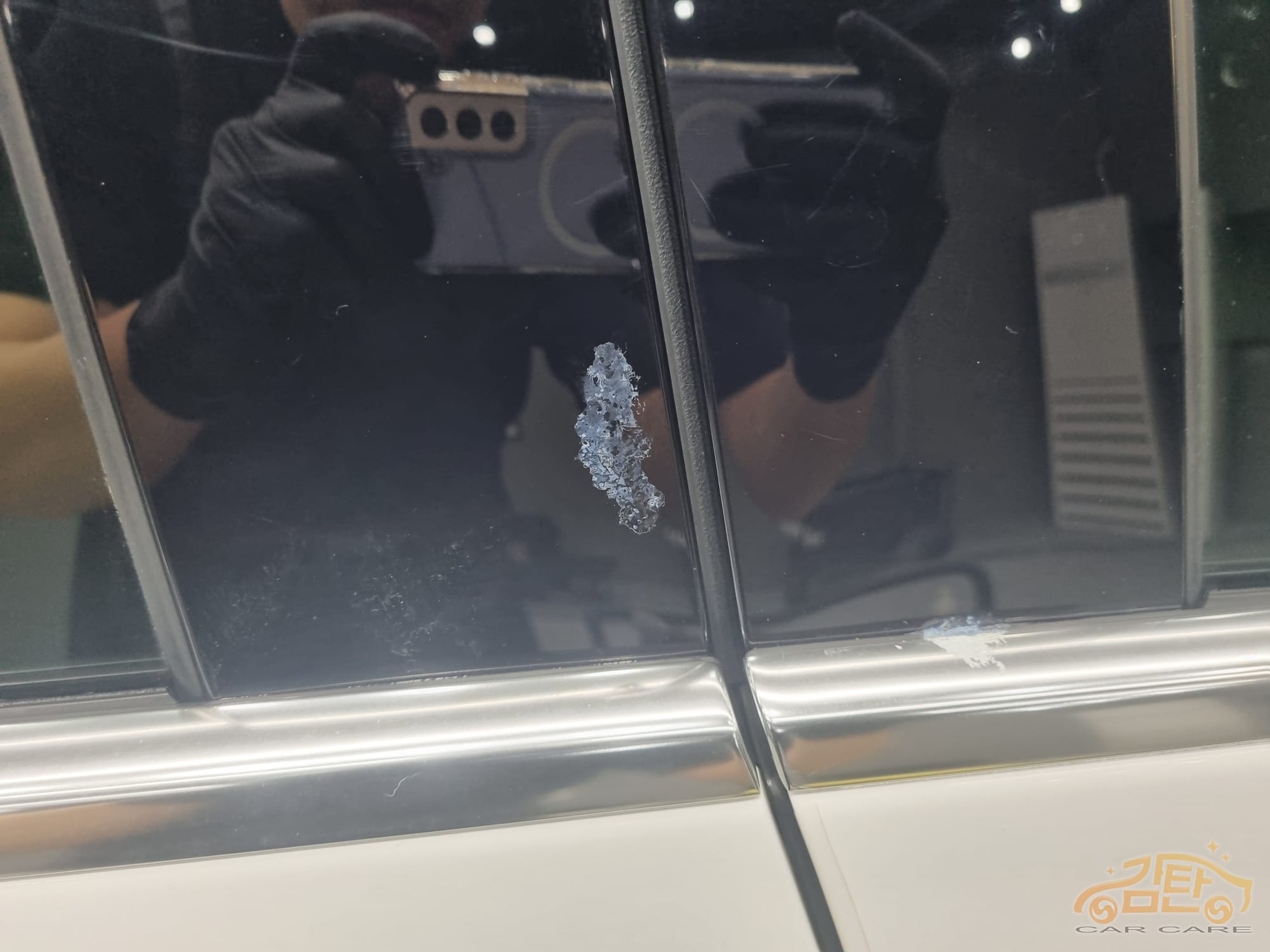 제거 전 사진과 같이 수액(송진)이 많은 곳에 묻어 있었고, 일주일정도 되었으나 차주님도 인터넷 검색으로 해본 방법으로 되지 않아 방문해 주셨습니다.